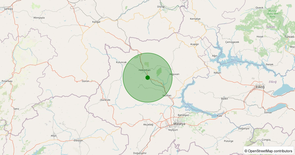 Son 7 gün içinde Hekimhan - Dumlu Köyü noktasından 100 km yarıçap içerisinde meydana gelen diğer depremler: