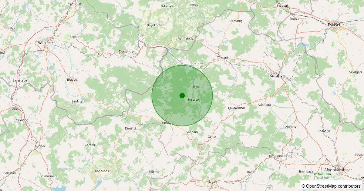 Son 7 gün içinde Emet - Katrandağı Köyü noktasından 100 km yarıçap içerisinde meydana gelen diğer depremler: