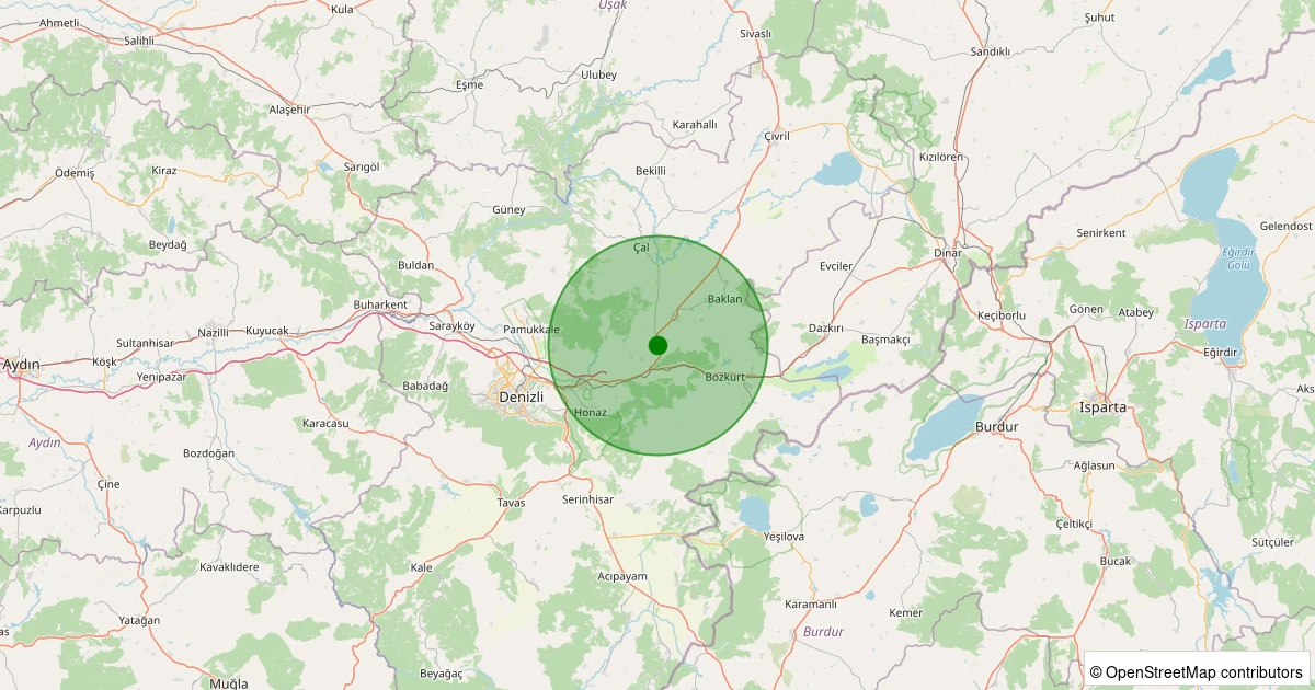 Son 7 gün içinde Baklan noktasından 100 km yarıçap içerisinde meydana gelen diğer depremler: