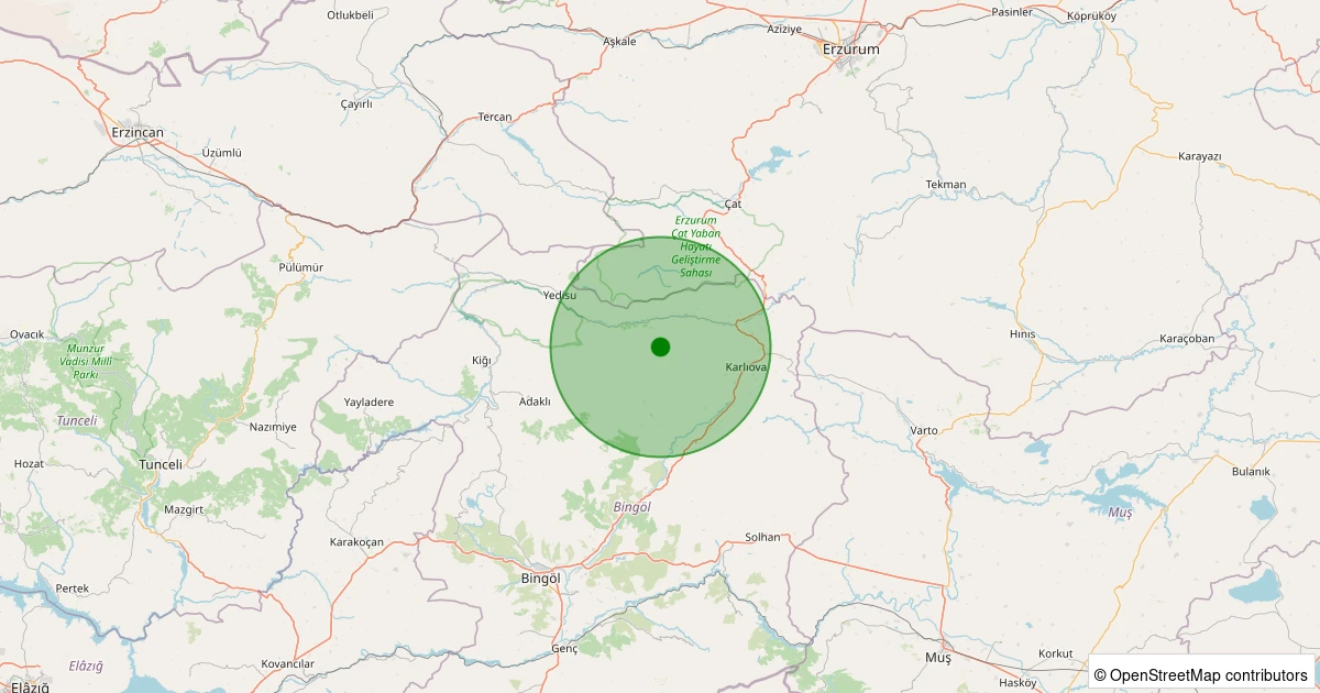 Son 7 gün içinde Karlıova - Kaynarpınar Köyü noktasından 100 km yarıçap içerisinde meydana gelen diğer depremler: