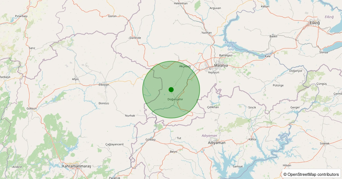 Son 7 gün içinde Doğanşehir - Polat noktasından 100 km yarıçap içerisinde meydana gelen diğer depremler: