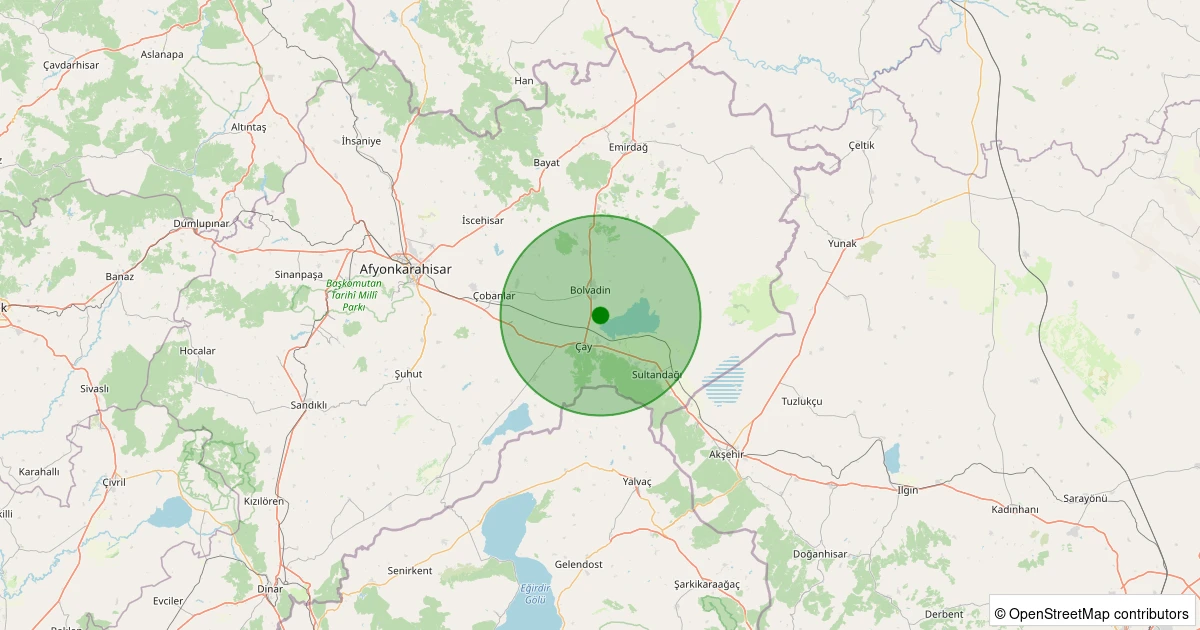 Son 7 gün içinde Bolvadin - Kırkgöz noktasından 100 km yarıçap içerisinde meydana gelen diğer depremler: