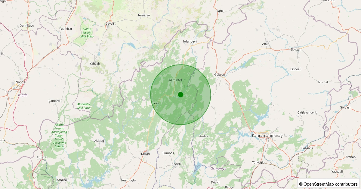 Son 7 gün içinde Saimbeyli - Yardibi noktasından 100 km yarıçap içerisinde meydana gelen diğer depremler: