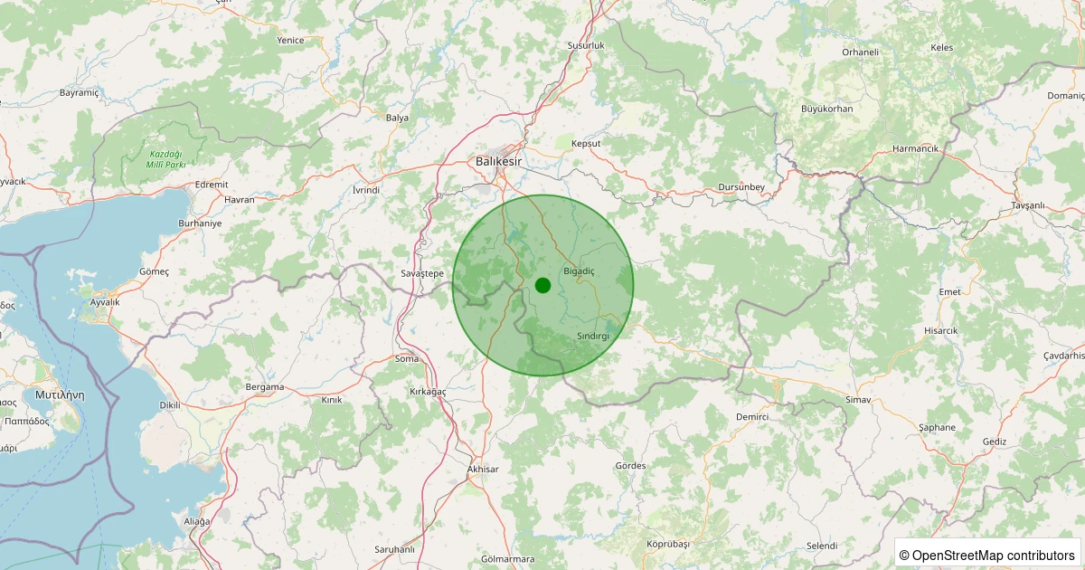 Son 7 gün içinde Sındırgı - Eşmedere noktasından 100 km yarıçap içerisinde meydana gelen diğer depremler: