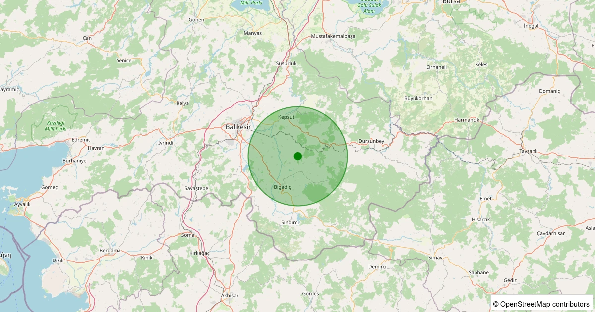 Son 7 gün içinde Bigadiç - Beğendikler noktasından 100 km yarıçap içerisinde meydana gelen diğer depremler: