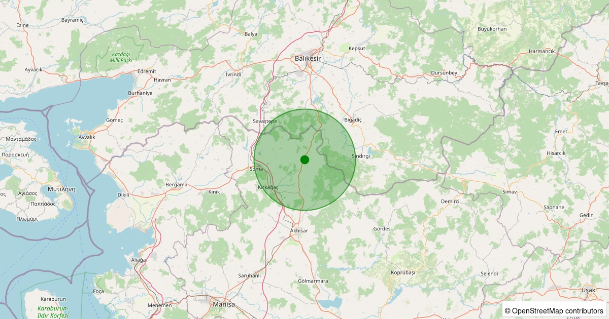 Son 7 gün içinde Kırkağaç - Güvendik noktasından 100 km yarıçap içerisinde meydana gelen diğer depremler: