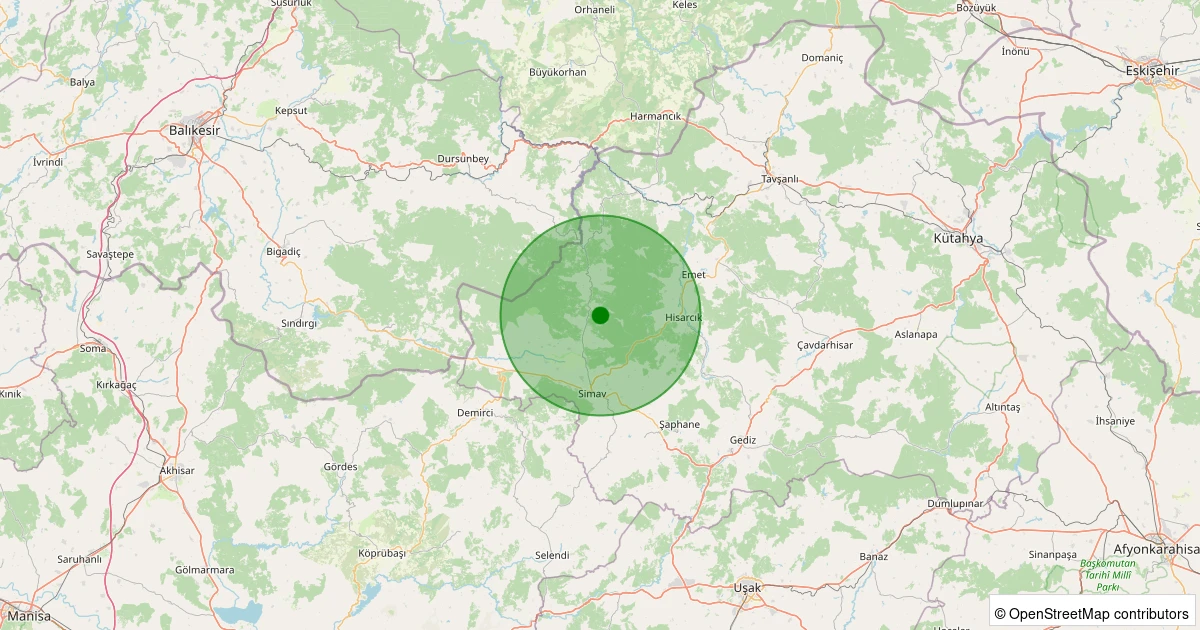 Son 7 gün içinde Simav - Maden Köyü noktasından 100 km yarıçap içerisinde meydana gelen diğer depremler:
