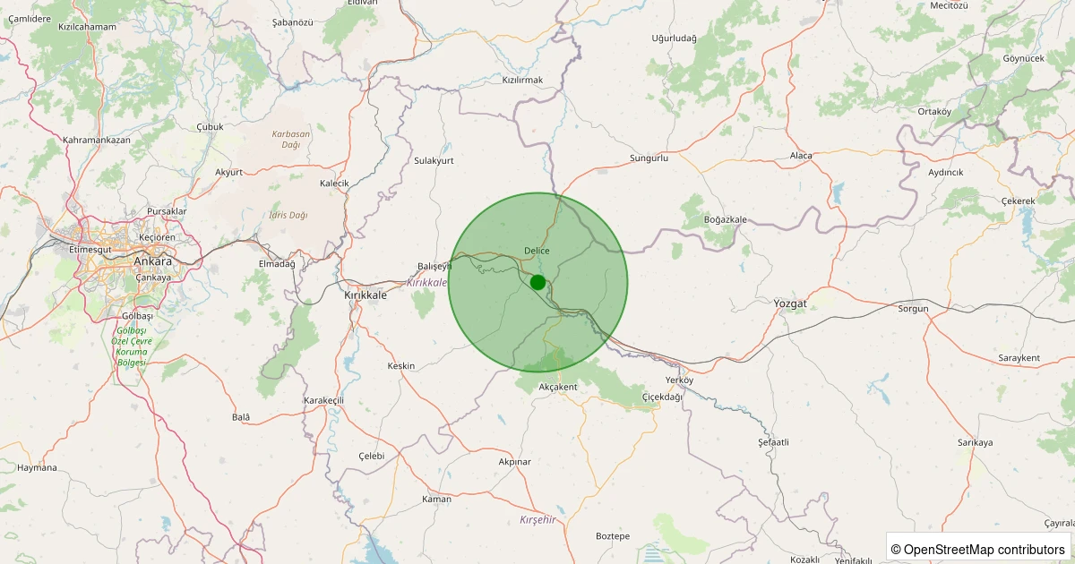 Son bir hafta içerisinde Kırıkkale şehri Delice noktasından 100 km yarıçap içerisinde toplamda 27 deprem kaydedilmiştir. Bu depremlerden en büyüğü 1.9 büyüklüğünde ve en sığ odaklısı 0.00 kilometre derinlikte gerçekleşmiştir.