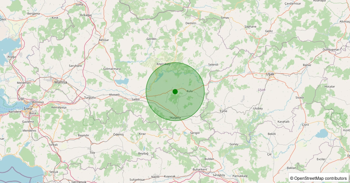 Son 7 gün içinde Kula - Gökçeören/Kale noktasından 100 km yarıçap içerisinde meydana gelen diğer depremler: